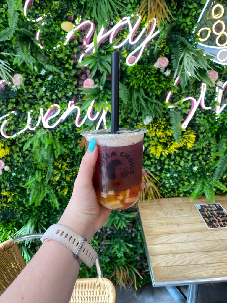 The cafe is very eye-catching, with designs of cute hedgehogs, a beautiful plant wall with a neon sign, and a wooden swing (which sadly I’m yet to try): overall an aesthetic that would immediately pique my vibes-obsessed zillennial self (I am a sucker for pretty marketing). On top of this, the Multea Choice social media game is pretty strong, they are taking full advantage of their aesthetic choices and interests of their target audience. On customer service too, I’d give them full marks; I forgot my loyalty card one time, and DMd them on instagram asking if I could get an extra point next time, and they were super understanding. So far, so good right? But how do they score on the quality of the bubble teas themselves? Read on to find out my ranking of four different teas.