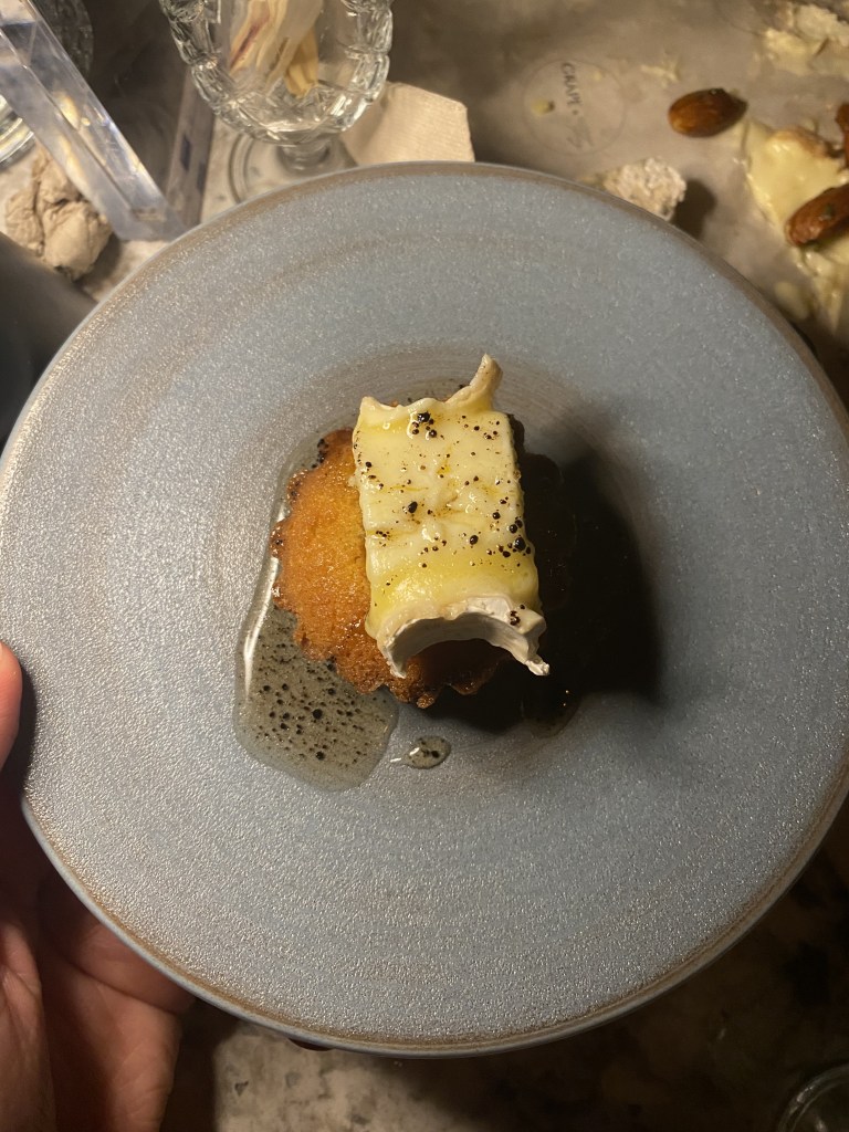 Throughout the evening, we had also been served small, not-always-cheese-related canapés: all of which were to die for. I never thought I’d say it, but I became obsessed with a cauliflower tartlet (it had an incredibly citrusy, zesty flavour – absolutely stunning). The desserts were also stand out: a blackcurrant and woodruff tart alongside a small scoop of sorrel ice cream – herbaceous, tart, perfumed – and a slice of Brillat Savarin on a cherry bakewell with truffle honey – decadent, indulgent and rich – though I felt the cherry bakewell was somewhat redundant as the flavours of the honey and creaminess of the cheese overpowered it all.